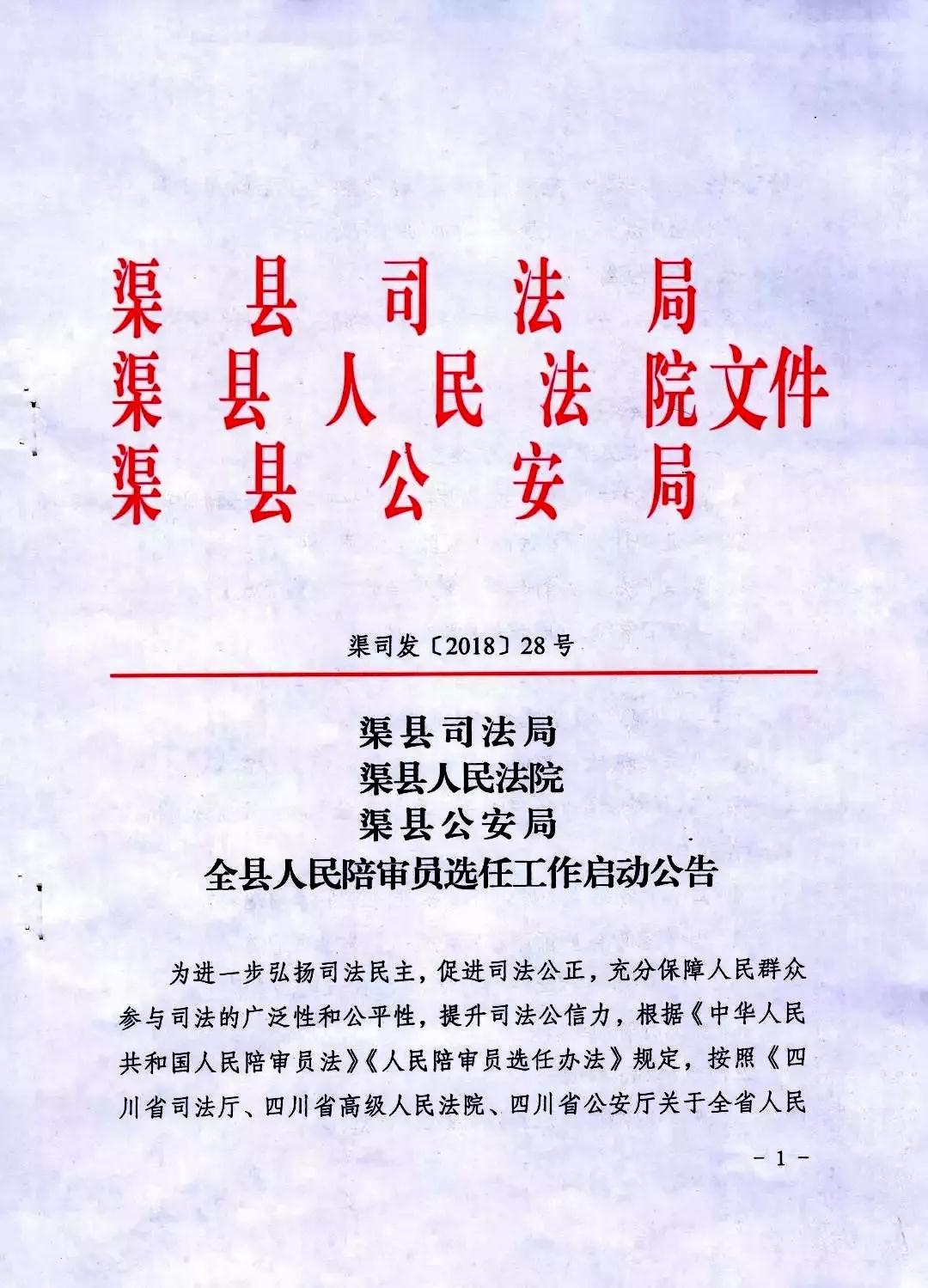 渠縣人民陪審員遴選報名開始了,